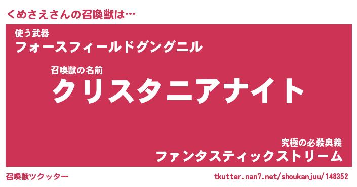 | ファンタジー風あだ名 | 『クメフェル』『エターナルクメサエー』 |