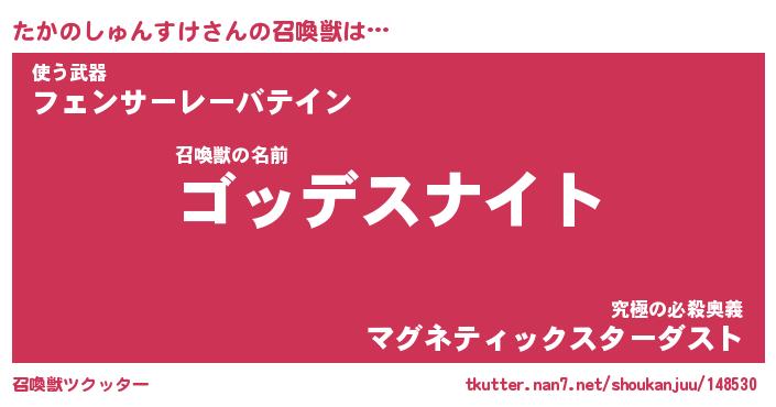 | 女子向けラノベタイトル風あだ名 | 『たかのしゅんすけ姫と円卓の騎士』 |