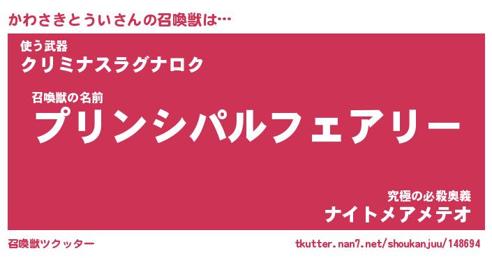 | 女子向けラノベタイトル風あだ名 | 『かわさきとうい姫と円卓の騎士』 |