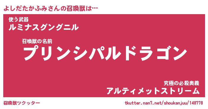 | 伝説のあだ名 | 『不死鳥の竜騎士よしだたかふみ』 |