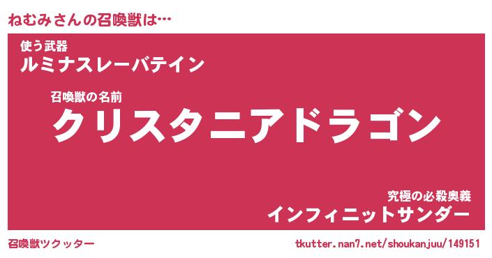 | 伝説のあだ名 | 『封印されし竜騎士ねむみ』 |