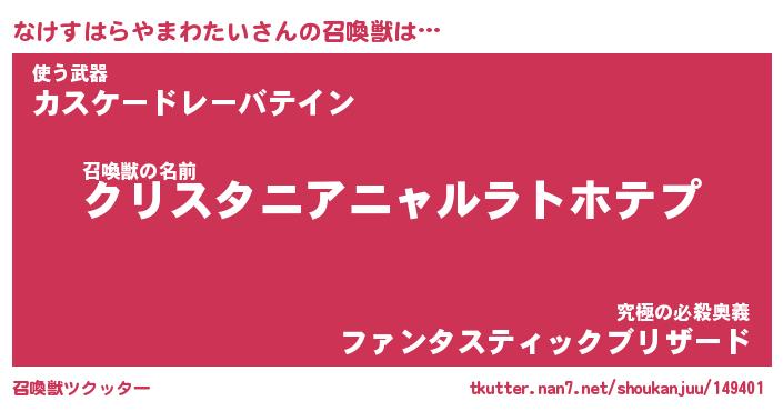 | 自動車の名前っぽいあだ名 | 『ナケティマ』『ナクア』『ナント』 |