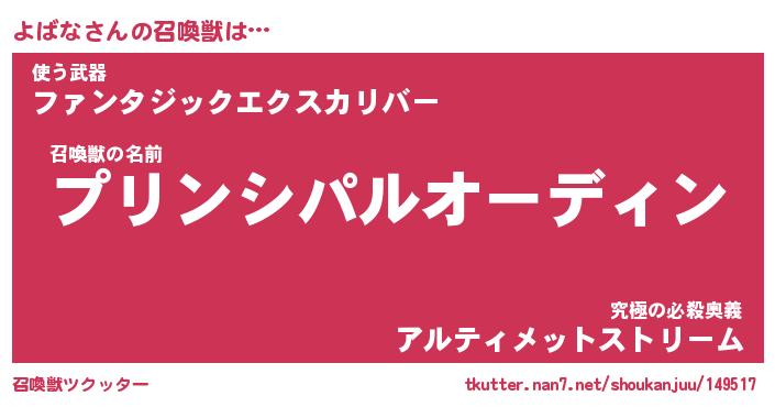 | 女子向けラノベタイトル風あだ名 | 『よばな姫と円卓の騎士』 |