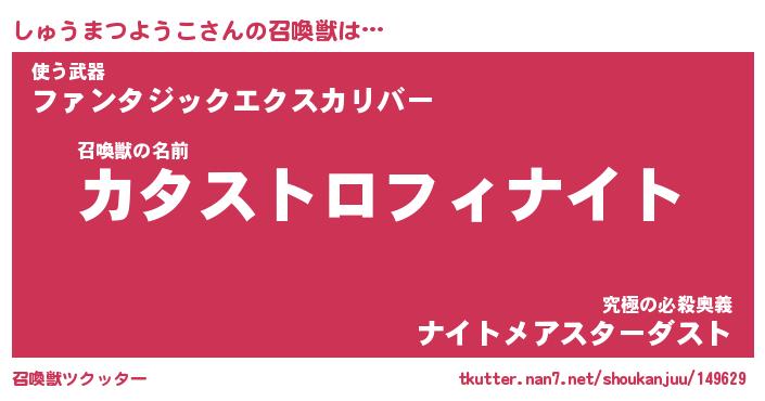 | 男性向けラノベタイトル風あだ名 | 『シュウマツヨウコアートオンライン』 |