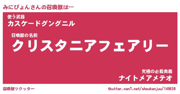 | ファンタジー風あだ名 | 『ミニフェル』『エターナルミニピョンー』 |