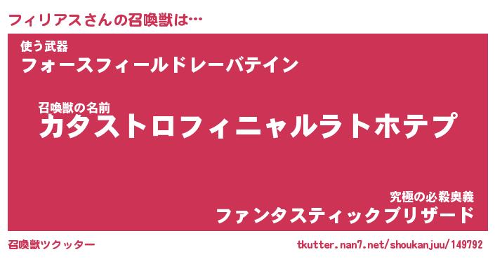 | 伝説のあだ名 | 『封印されしスナイパーフィリアス』 |