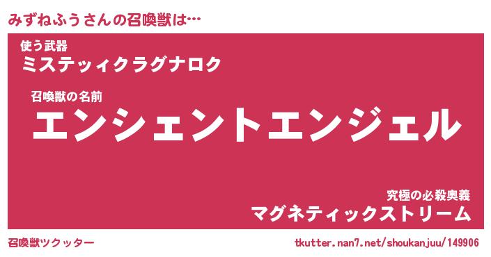 | ファンタジー風あだ名 | 『ミズフェル』『エターナルミズネフウー』 |