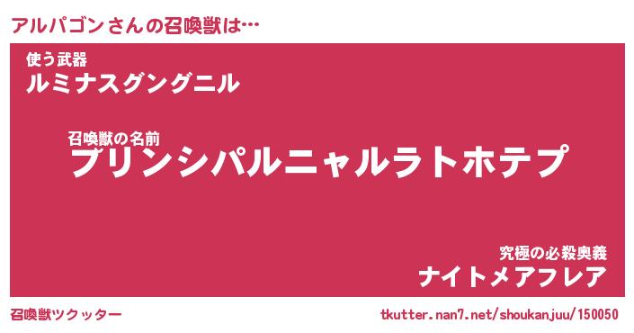 | 胡散臭い通販商品みたいなあだ名 | 『モテモテ間違いなし霊験あらたかなお札…その名も「アルパゴン」』 |