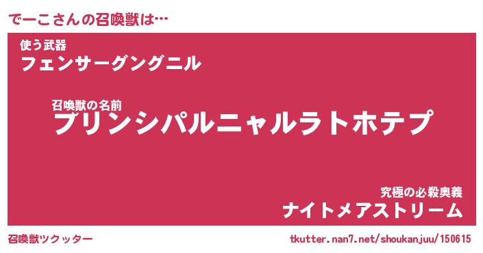 | 女子向けラノベタイトル風あだ名 | 『でーこ姫と円卓の騎士』 |