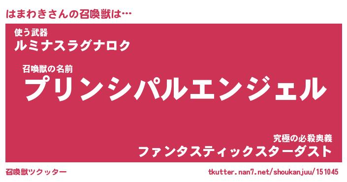 | 男性向けラノベタイトル風あだ名 | 『はまわきの憂鬱』 |