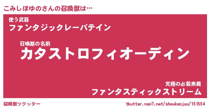| 伝説のあだ名 | 『封印されしスナイパーこみしほゆの』 |