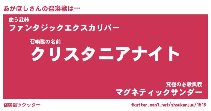 ツイッター | あかほしさんのツイッターID『namakemono_kun』 |