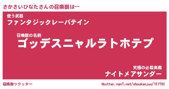 | 女子向けラノベタイトル風あだ名 | 『さかさいひなた姫と円卓の騎士』 |