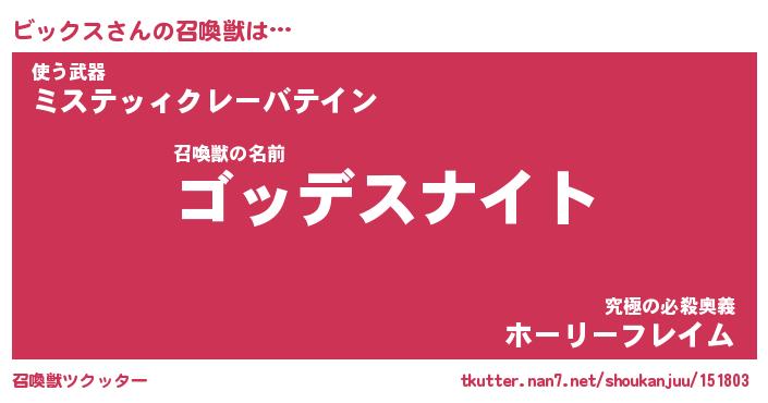 | 女子向けラノベタイトル風あだ名 | 『ビックス姫と円卓の騎士』 |