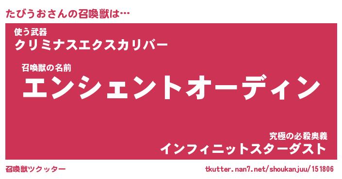 | ヒーロー風カッコイイあだ名 | 『スーパータビウオ』『天弓騎士タビ』 |