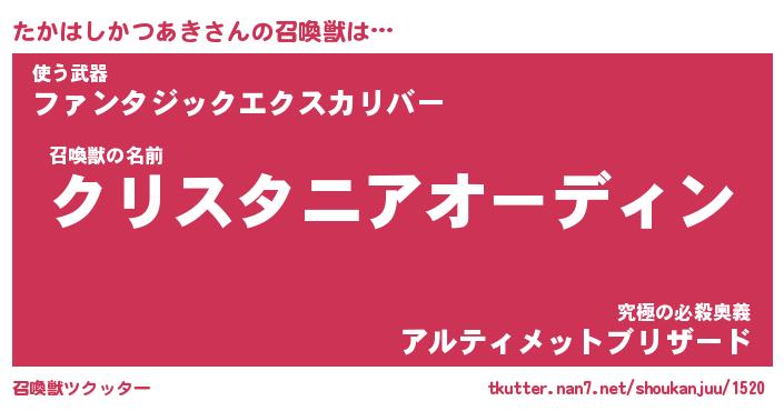 | 肩書あだ名 | 『たかはしかつあき御曹司』 |