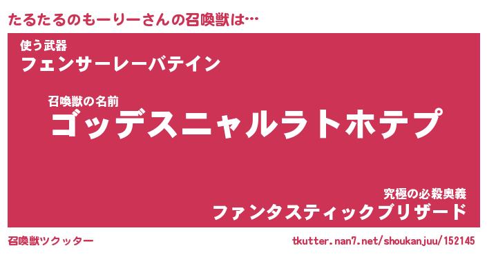 | 伝説のあだ名 | 『不死鳥のスナイパーたるたるのもーりー』 |