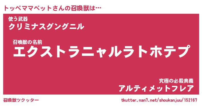| 胡散臭い通販商品みたいなあだ名 | 『必ず成功する霊験あらたかなお札…その名も「トッペママペット」』 |