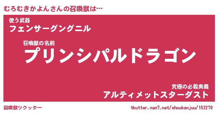 | 伝説のあだ名 | 『不死鳥の竜騎士むろむきかよん』 |