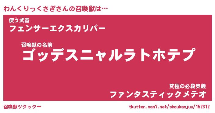 | 女子向けラノベタイトル風あだ名 | 『わんくりっくさぎ姫と円卓の騎士』 |
