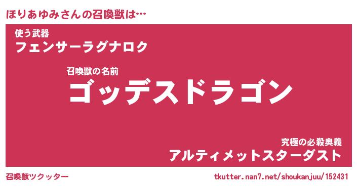 | ファンタジー風あだ名 | 『ホリフェル』『エターナルホリアユミー』 |