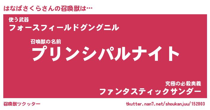| 女子向けラノベタイトル風あだ名 | 『はなばさくら姫と円卓の騎士』 |
