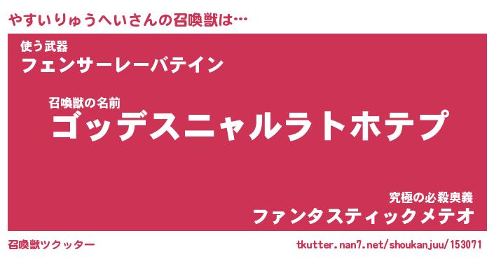 | ヒーロー風カッコイイあだ名 | 『スーパーヤスイリュウヘイ』 |