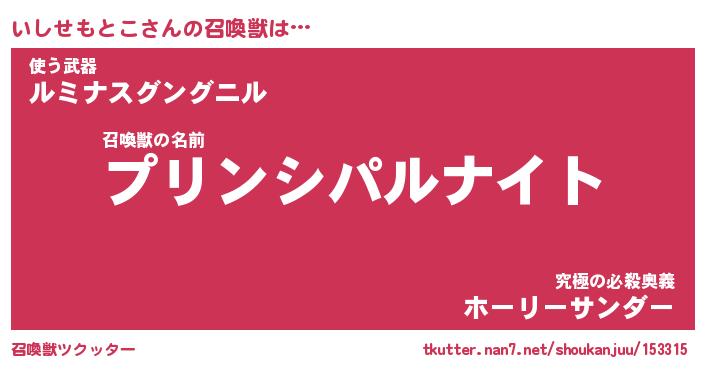 | 女子向けラノベタイトル風あだ名 | 『いしせもとこ姫と円卓の騎士』 |