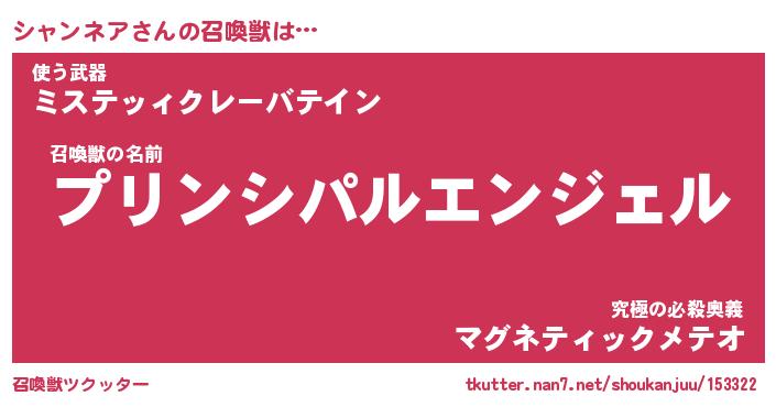 | ファンタジー風あだ名 | 『シャフェル』『エターナルシャンネアー』 |