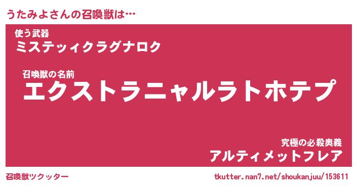 | ファンタジー風あだ名 | 『ウタフェル』『エターナルウタミヨー』 |