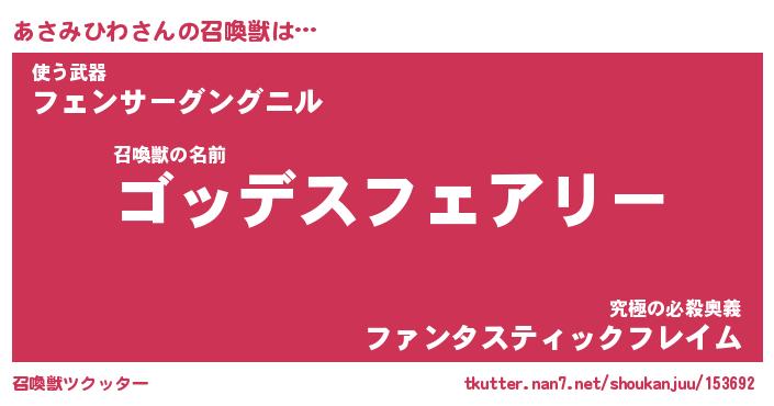 | ファンタジー風あだ名 | 『アサフェル』『エターナルアサミヒワー』 |