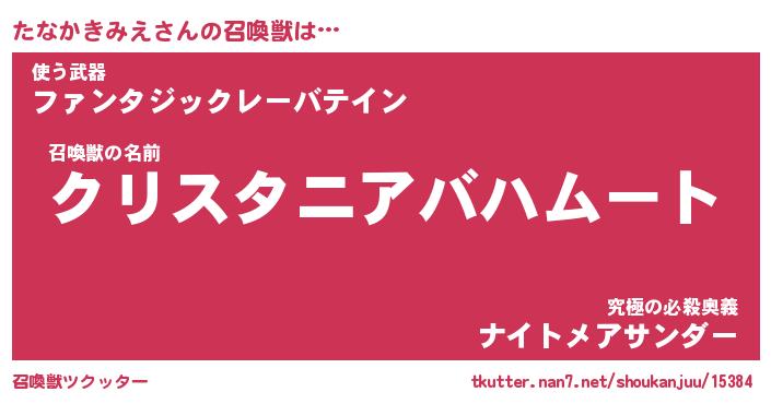 | ツイッター | たなかきみえさんのツイッターID『namakemono_star』 |