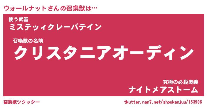 | 伝説のあだ名 | 『封印されしスナイパーウォールナット』 |