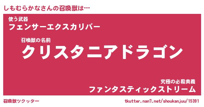 | 伝説のあだ名 | 『封印されし竜騎士しもむらかな』 |