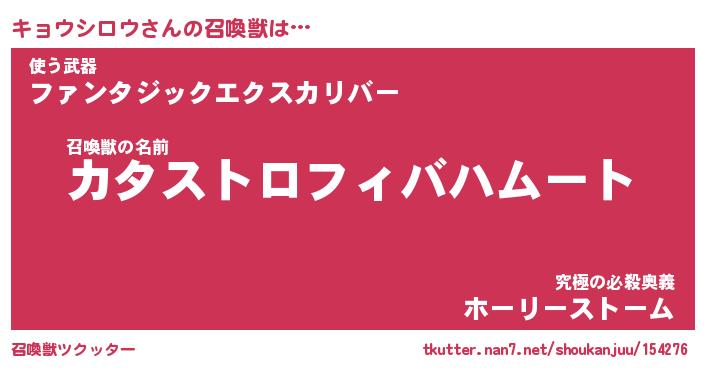 | ヒーロー風カッコイイあだ名 | 『スーパーキョウシロウ』『暗黒騎士キョ』 |