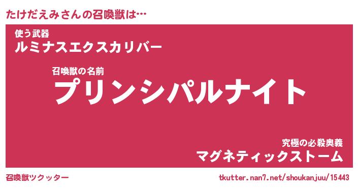 | 女子向けラノベタイトル風あだ名 | 『たけだえみ姫と円卓の騎士』 |
