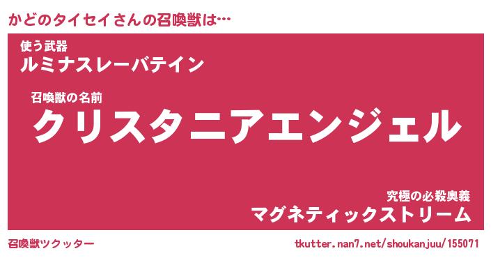 | 伝説のあだ名 | 『封印されし傭兵かどのタイセイ』 |
