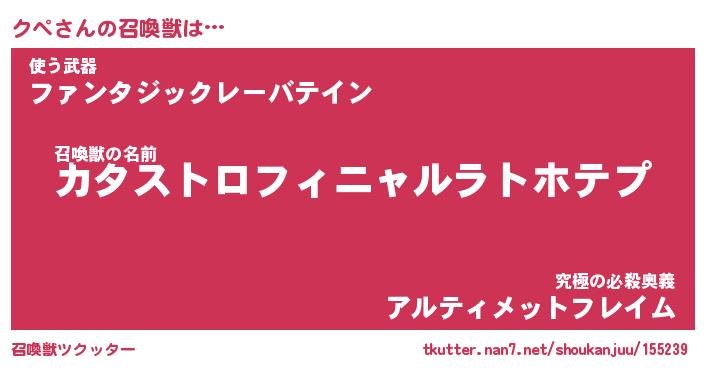 | ファンタジー風あだ名 | 『クペフェル』『エターナルクペー』 |