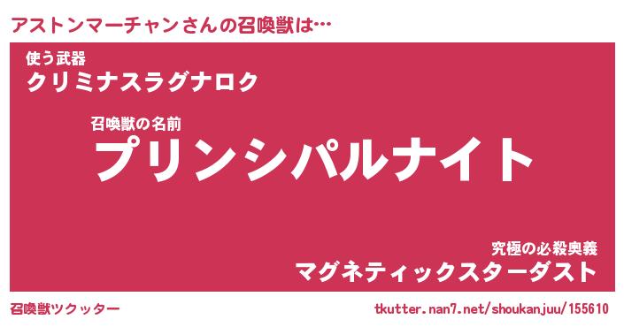 | 女子向けラノベタイトル風あだ名 | 『アストンマーチャン姫と円卓の騎士』 |