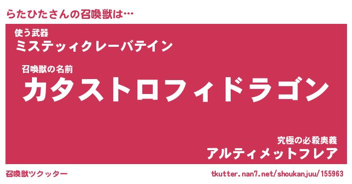 | 自動車の名前っぽいあだ名 | 『ラタティマ』『ラスラー』『ラント』 |