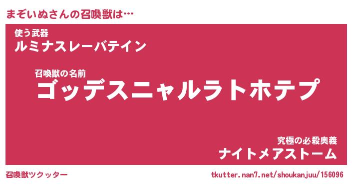 | 伝説のあだ名 | 『不死鳥のスナイパーまぞいぬ』 |