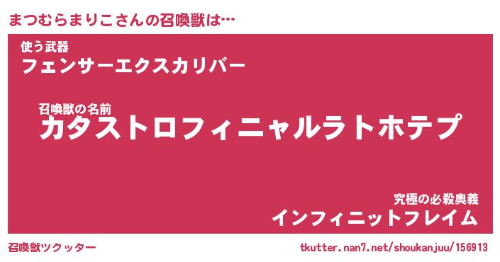 | 伝説のあだ名 | 『封印されしスナイパーまつむらまりこ』 |