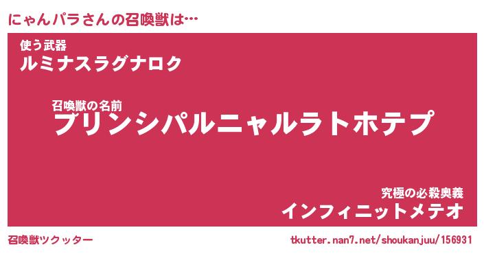 | 伝説のあだ名 | 『不死鳥のスナイパーにゃんパラ』 |