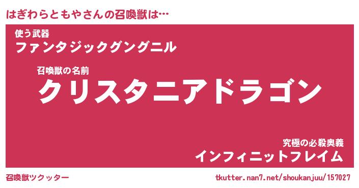 | 伝説のあだ名 | 『封印されし竜騎士はぎわらともや』 |