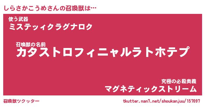 | 伝説のあだ名 | 『封印されしスナイパーしらさかこうめ』 |