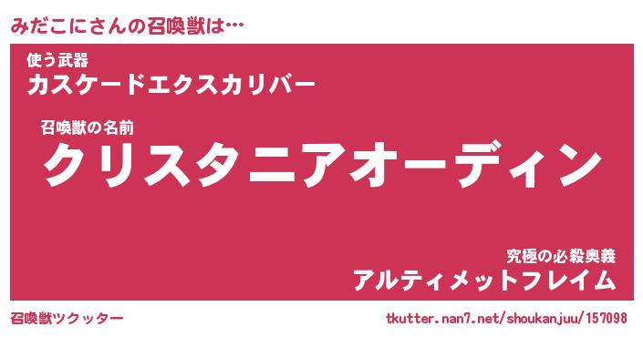 | ファンタジー風あだ名 | 『ミダフェル』『エターナルミダコニー』 |