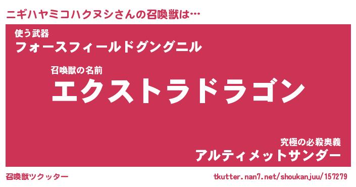 | 料理風あだ名 | 『ほっこり♪ニギハヤミコハクヌシの味噌そぼろ煮』 |