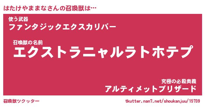 | 伝説のあだ名 | 『伝説のスナイパーはたけやままな』 |