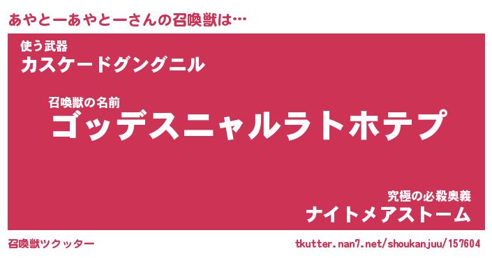 | 胡散臭い通販商品みたいなあだ名 | 『モテモテ間違いなし霊験あらたかなお札…その名も「あやとーあやとー」』 |