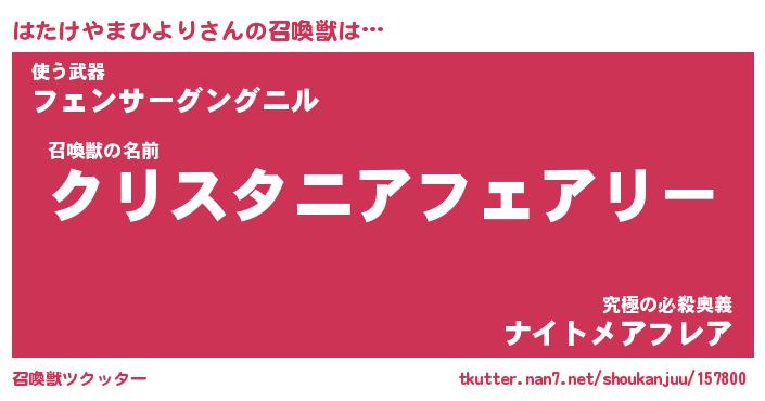 | 伝説のあだ名 | 『封印されし竜騎士はたけやまひより』 |